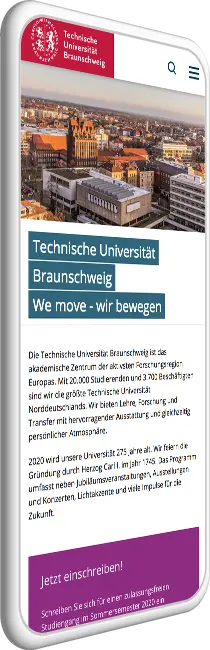 The relaunch of the TU Braunschweig was implemented with the CMS TYPO3. The website is based on the TYPO3 Higher Education Package, which already contains numerous central features.